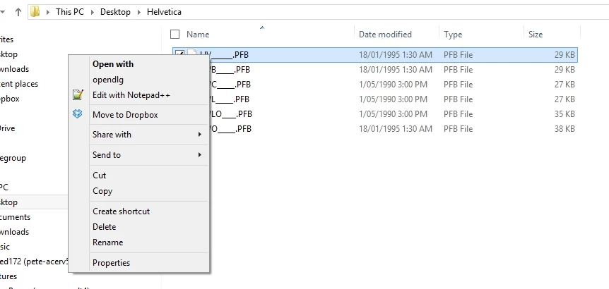 no option to install after right click on HV________.PFB font in Windows 8 64 bit
