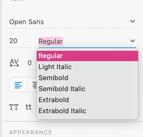 In XD, the file I'm working on is missing some of the weights (bold, italic, regular, semibold) So no logic there.