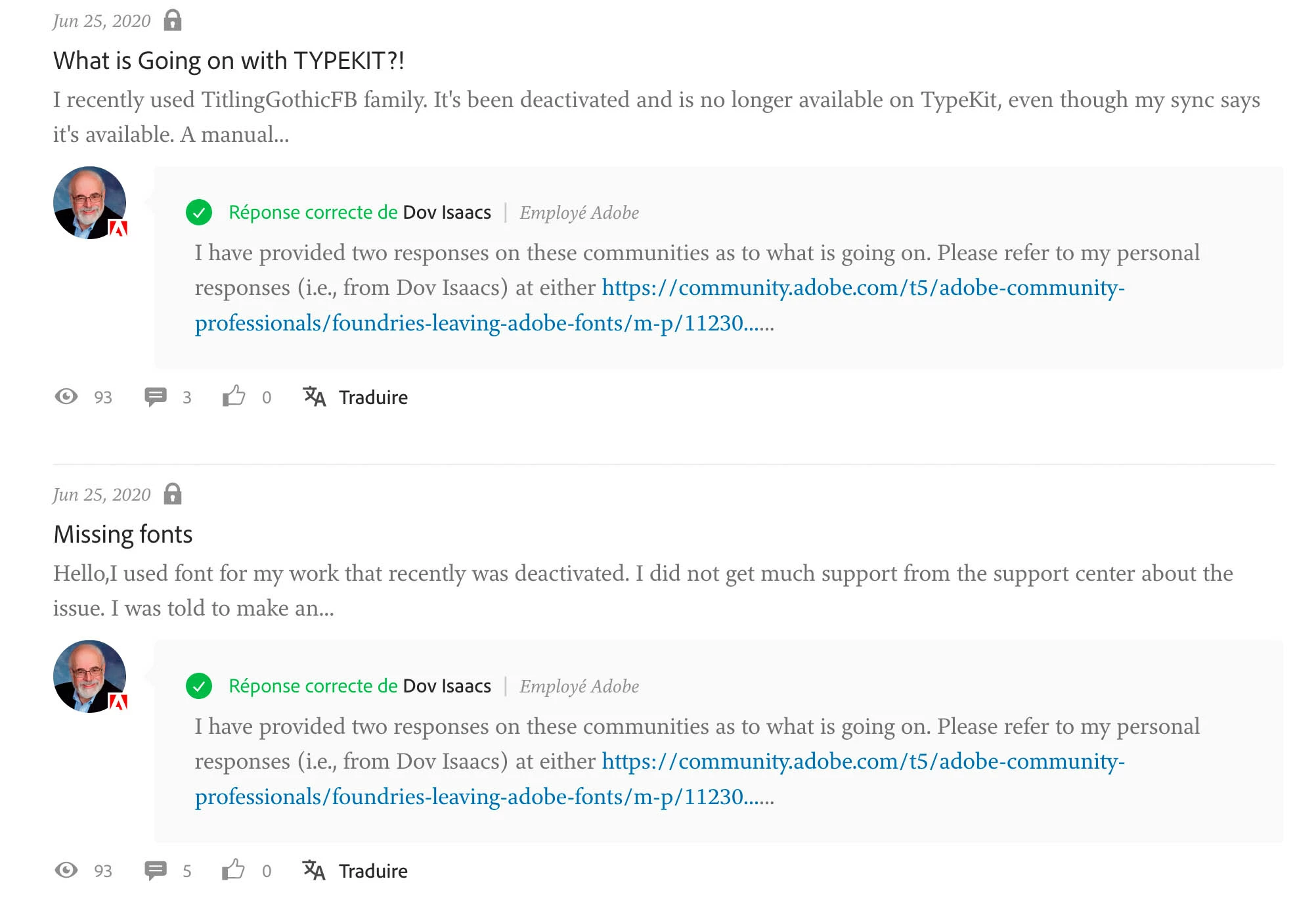 Pour ces réponses, les liens sont cassés ?????