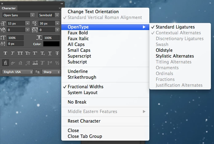 These are the settings for both lines, the ONLY difference is that on the MAC (bottom line), "Contextual Alterates" is checked and grayed out. The PC user doesn't have this option. There is no way for the Mac user to unselect this setting to see if it is the cause for the inconsistency.