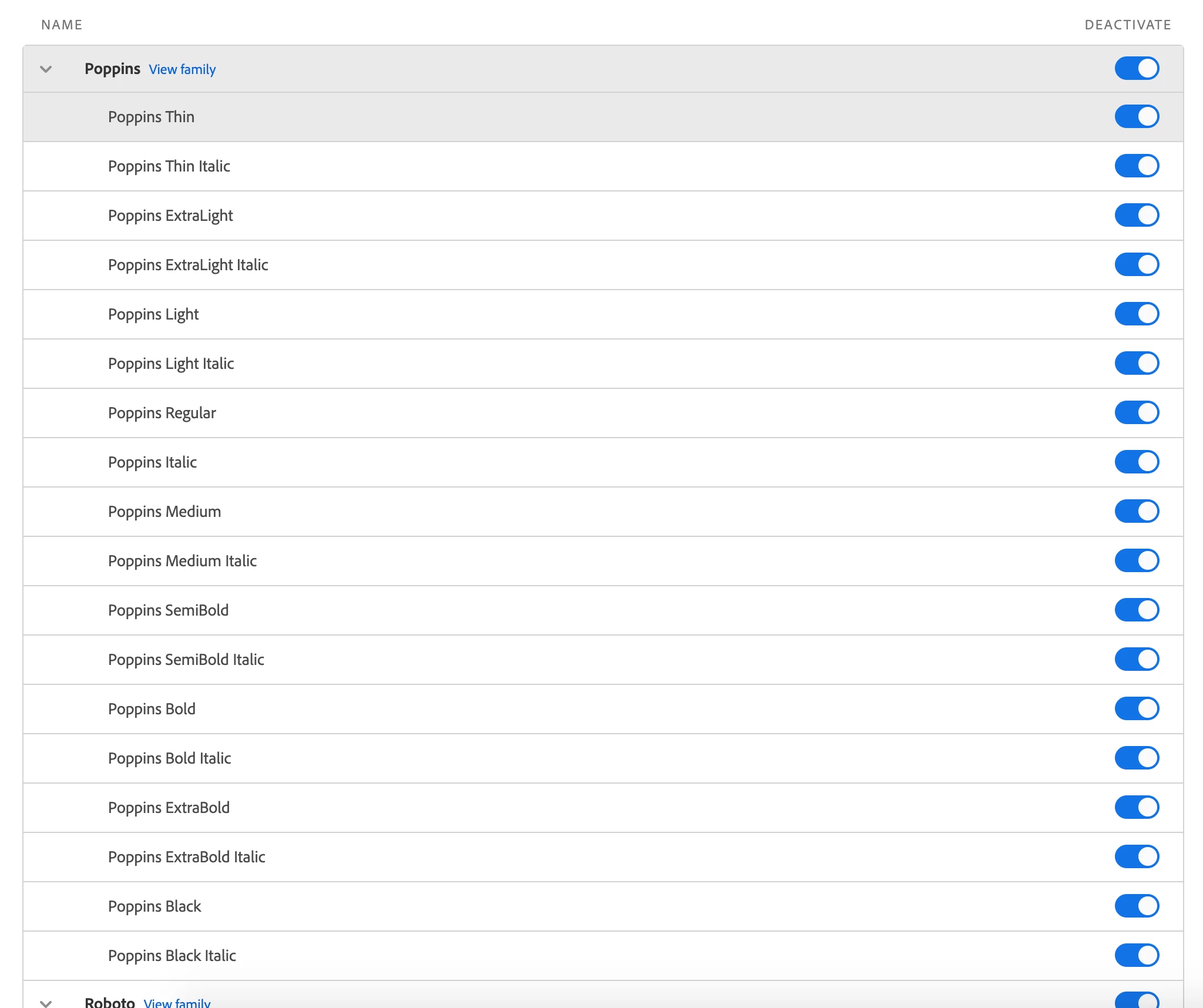 I'm trying to use the font Poppins, in the attached screenshots you can see that in AE (it's all adobe apps and apps outside of adobe) I only get the one font weight of bold. In the other screen shot you can see that I've synced the whole font family. I checked and I don't have Poppins installed already, it doesn't show up in font book nor does it appear when I search my system with hidden files shown. Any help would be appreciated.