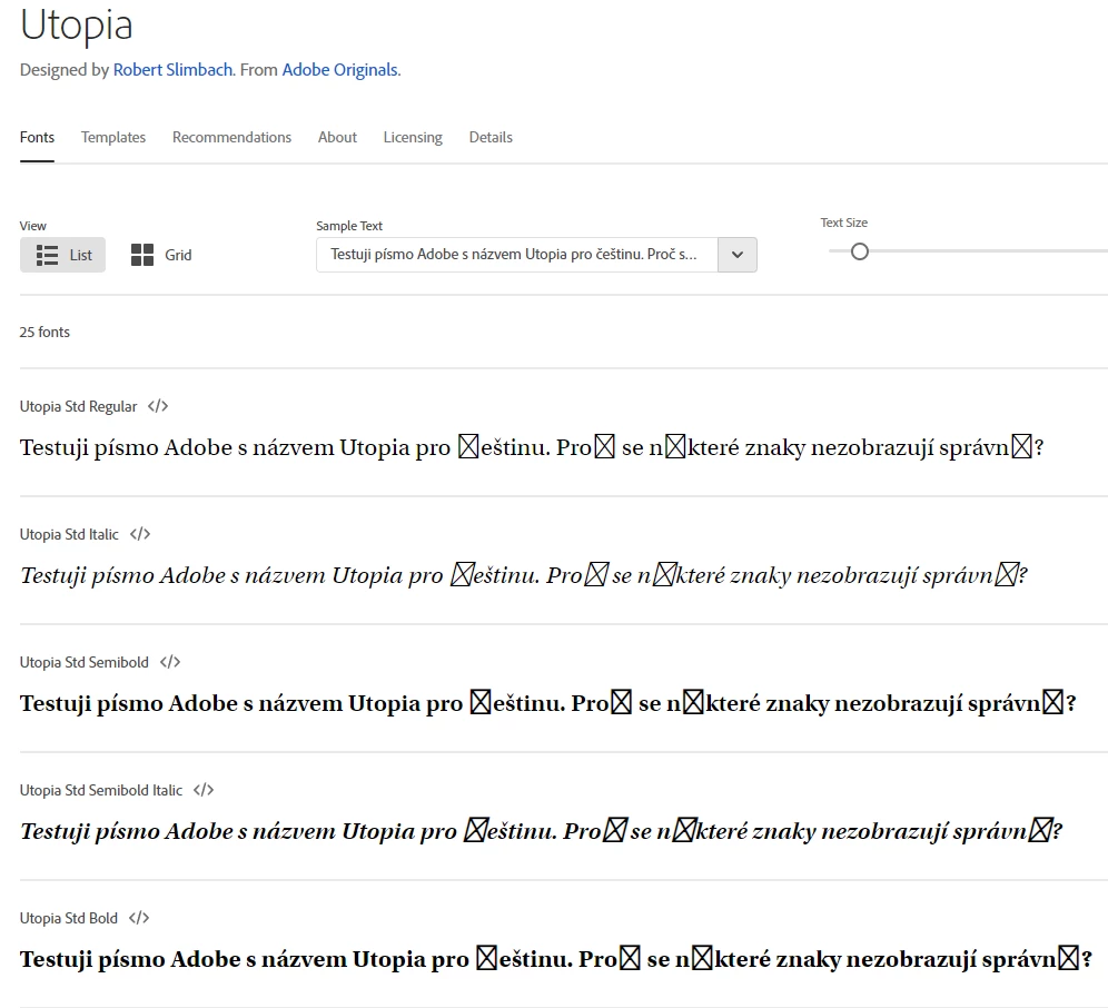Hi, the Utopia font, which always worked in Czech texts, it has no longer support for the Czech language? And many other fonts which were for Czech they dont´work anymore too. Why? Thank you