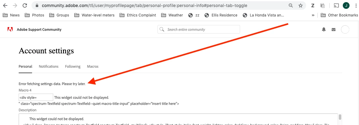 Account Settings broken