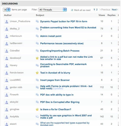 The "Last post" link to the right isn't visible at http://forums.adobe.com/community/acrobat/acrobat_windows