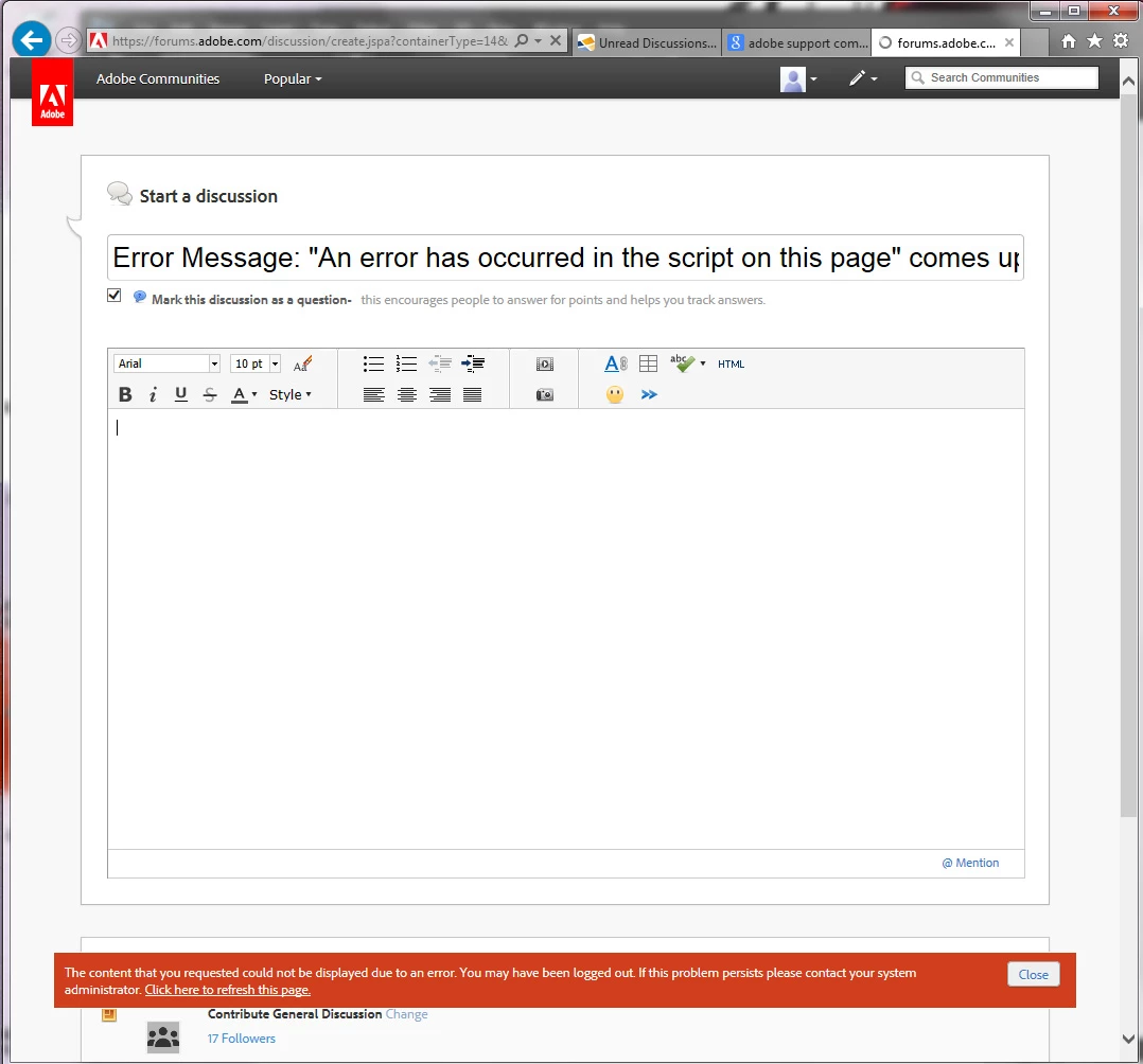 Adobe Community crashes when I try to post a question (rare that I am able to even post this now)