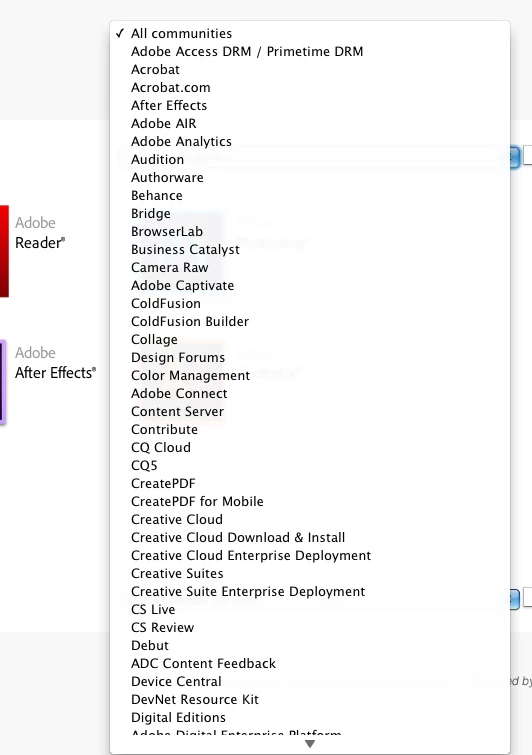 I know it's a faint hope, but is there any chance of finally getting the communities list on the main page (the start of which is shown below) actually sorted into alphabetic order? I am constantly responding to people who are posting in the wrong forum area because they cannot find the one they are looking for.