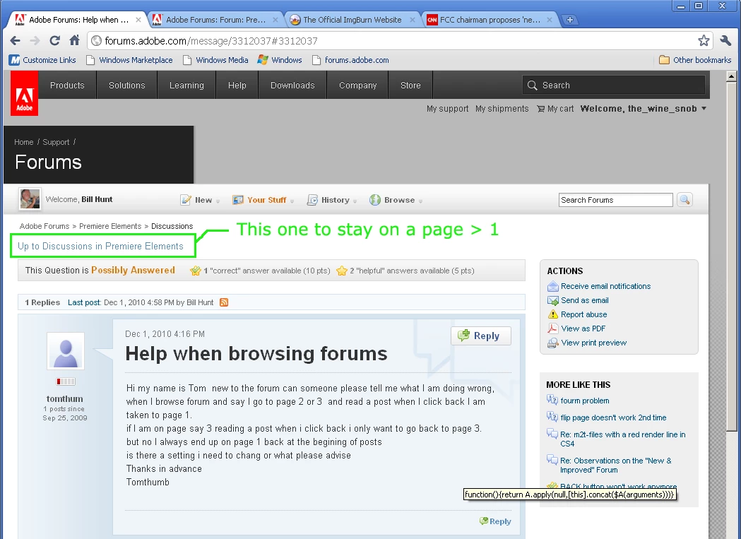 If I'm on, say, page 3 of a forum and I read a post, if I hit the Back button in my browser it takes me back to page 1 rather than page 3. Super-unfriendly and annoying behavior... does this happen to anyone else?