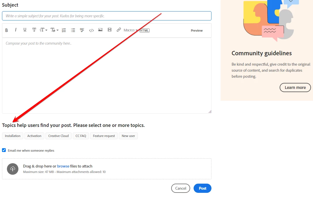 when posting, select a topic (any one or more) below what's shown in your screenshot.