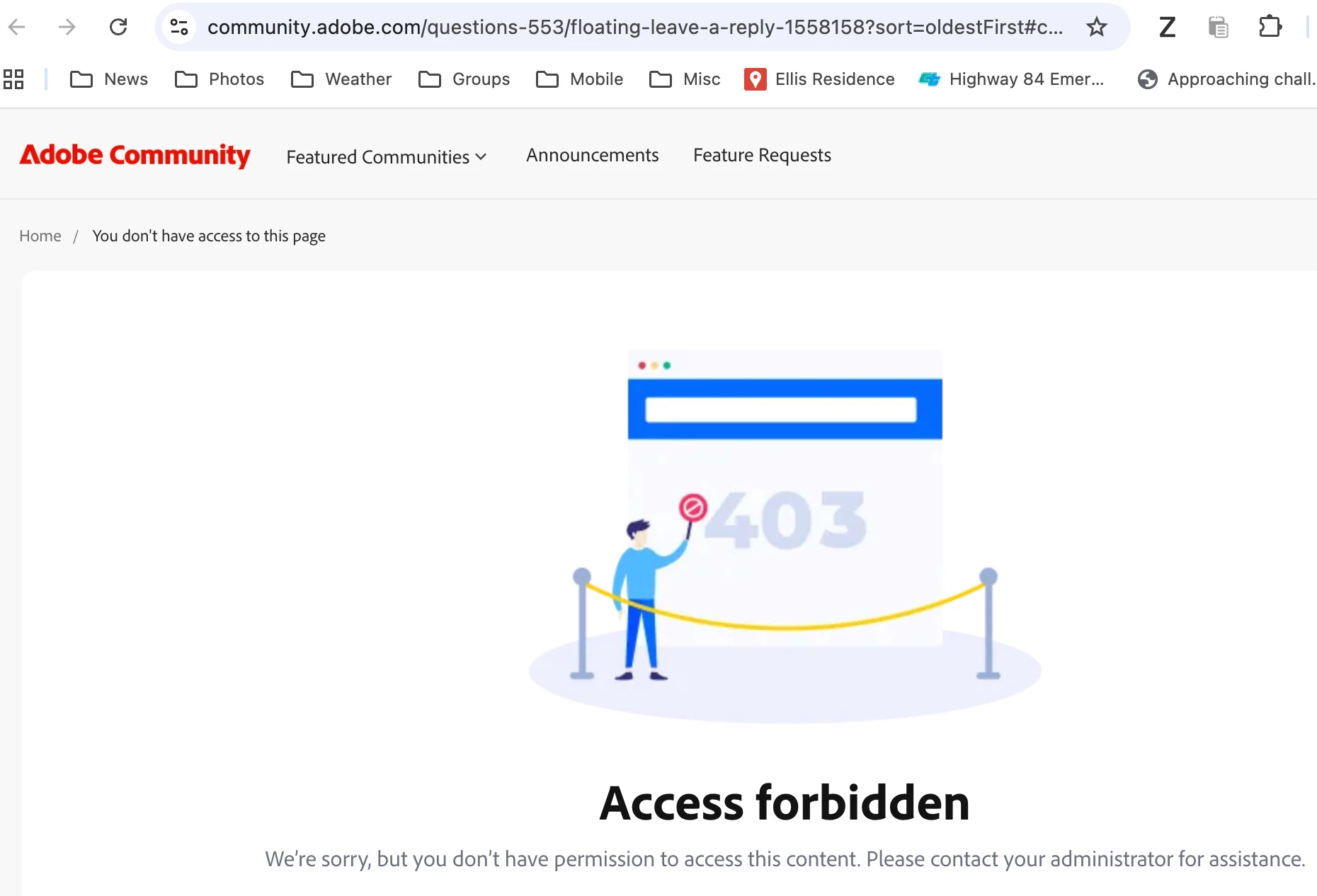 The new user interface for the Adobe forums (on the Gainsight platform) is even worse than the old Khoros platform. The interface is determined not to show you information, collapsing nested replies, showing you just seven lines of the reply you're composing, showing top-level replies in newest-first order, and providing no page index for accessing long threads.