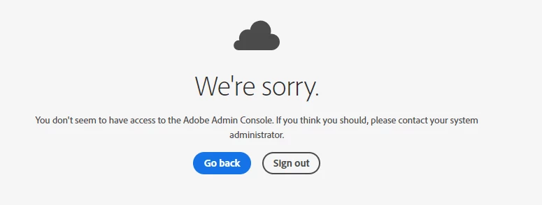 I recently setup Adobe Spark for my K-12 school. I was initially able to access the admin console and setup all the Google SSO info. Now I can't get back into the console to assign Spark licenses to users. I keep getting the message that I do not have authoriation or I get an error. I have attached all the different message I get when trying to access the console. (Also, phone support was absolutely useless.)