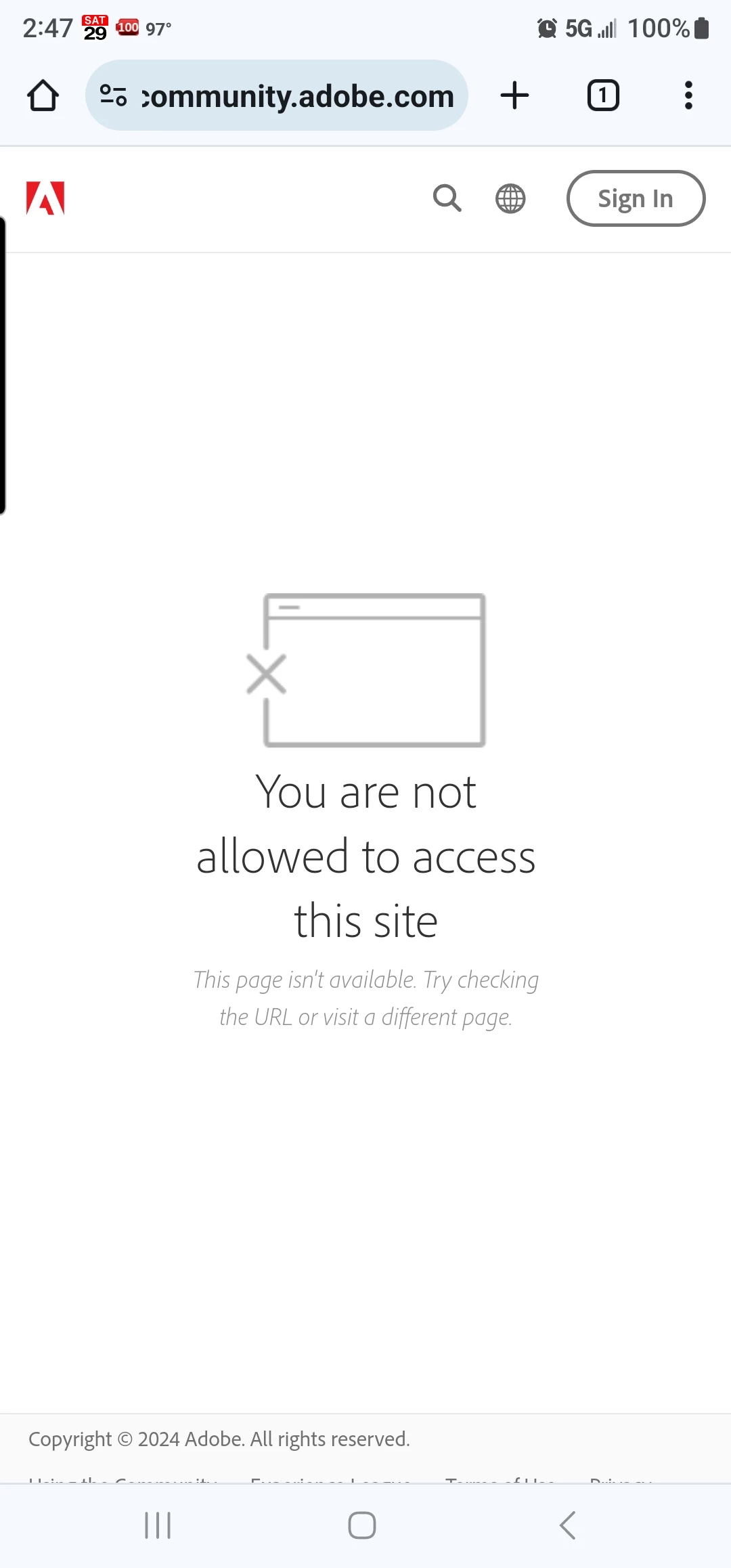I'm trying to login to adobe community. But each time I pad in this restricted view page. After some Google, as far as well could see the posts. It looked like I'm blocked coed or banned.