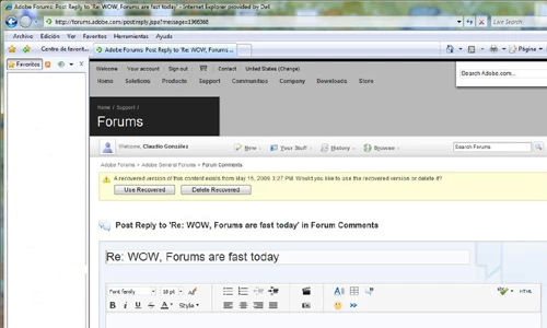 Fine, I need to login again, but that message that I may have spent quite some effort composing is GONE! I can not click the back button to retrieve it because of the DHTML nature of the message form. The login process does not remember my post. It is just gone and I have to re-compose it after I login again.