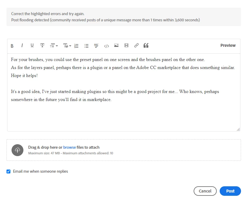 Cannot reply to a post