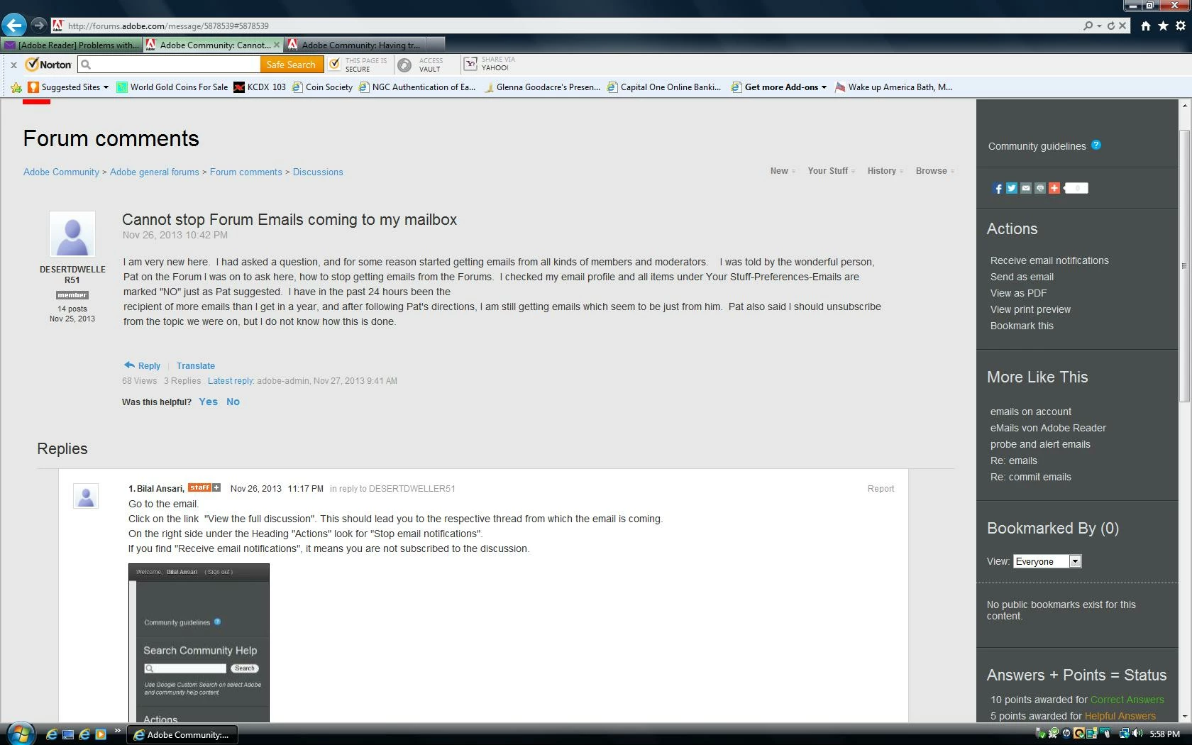 I am very new here. I had asked a question, and for some reason started getting emails from all kinds of members and moderators. I was told by the wonderful person, Pat on the Forum I was on to ask here, how to stop getting emails from the Forums. I checked my email profile and all items under Your Stuff-Preferences-Emails are marked "NO" just as Pat suggested. I have in the past 24 hours been the