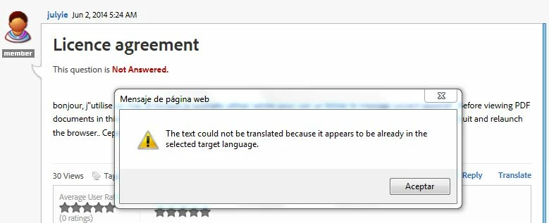 Cannot translate from French to English because it is in English?