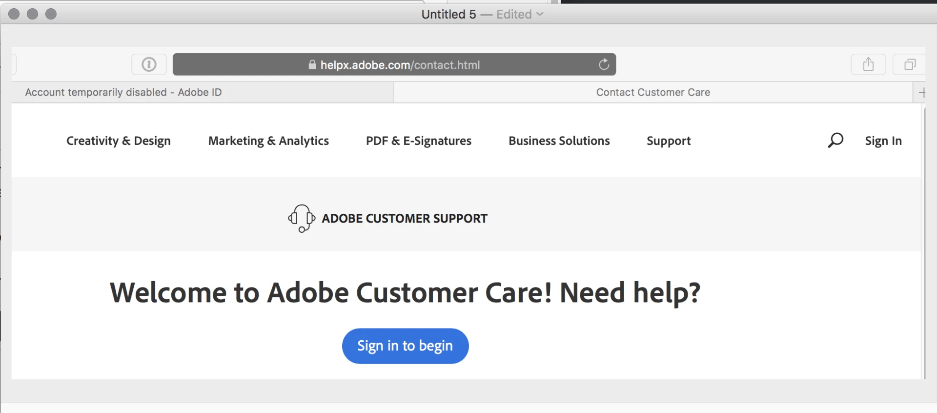 The laugh-out-loud part is that when I click "Contact Adobe Customer Support" for help with signing in, I have to sign in to get support. This cracks me up!
