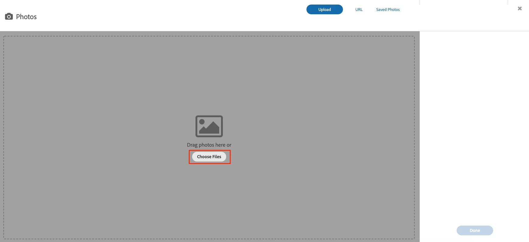 Upload your image by clicking on Choose Files, select the formatting and the size, and select Done