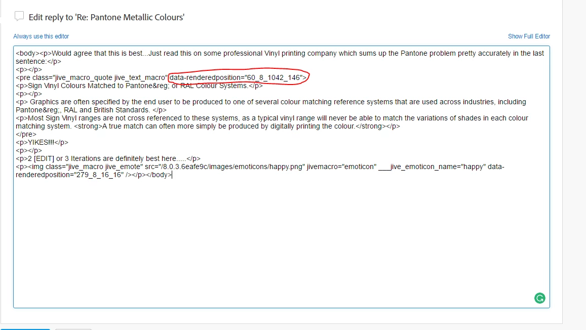 As above I go to edit one of the responses I posted to a post with a quote and my quotes end up being scrolled... Sometimes this happens even when I'm just quoting the first time around....