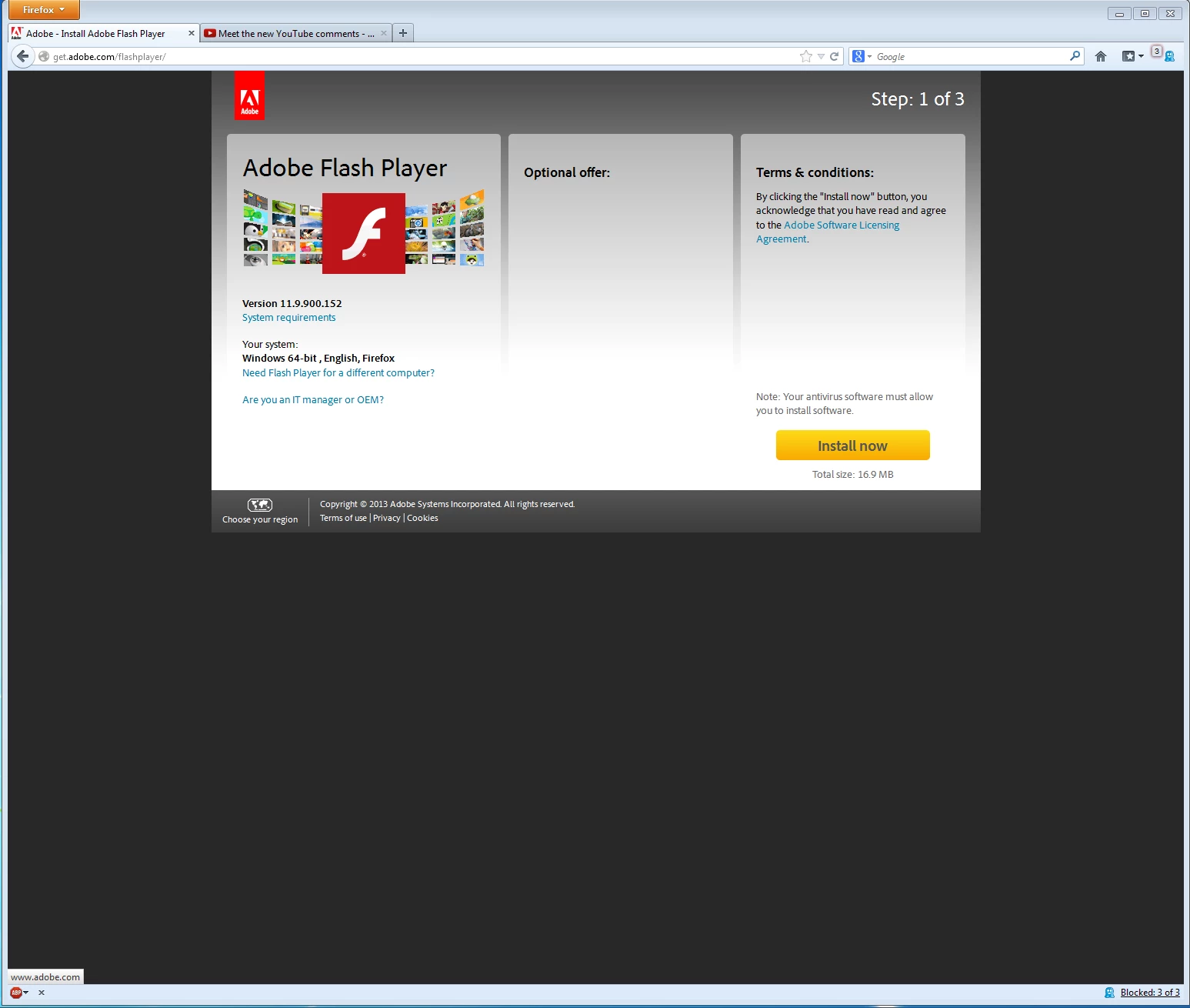 My mouse was hovering directly over the "Install Now" button when this screen shot was taked.