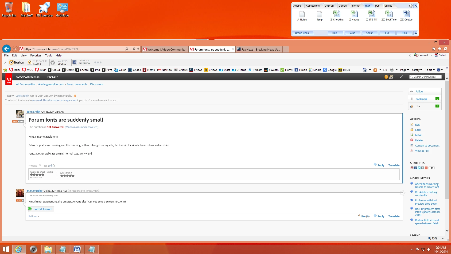 Between yesterday morning and this morning, with no changes on my side, the fonts in the Adobe forums have reduced size