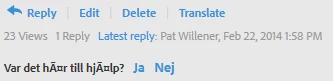 If I set the language on the main Adobe.com page to something other than English, the forum language also changes. I recently set it to French to look for a French helpx article, and some of the French forum content is displayed as garbage: