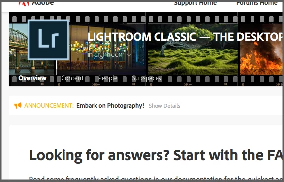 And in the Lightroom Classic forum, the Content link is camouflaged in the header filmstrip graphics.