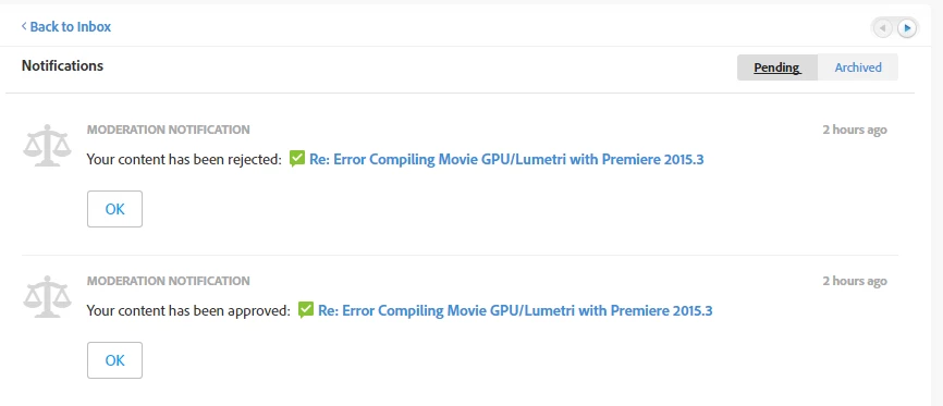 First email subject: Approved: Re: Error Compiling Movie GPU/Lumetri with Premiere 2015.3