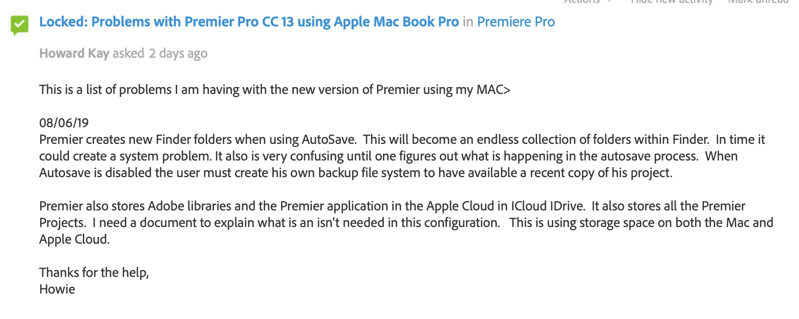 How can I remove a locked post in the design forum caused by also entering the same post in the Premiere forum?