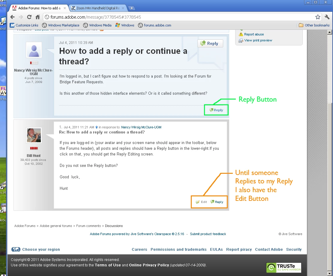 I'm logged in, but I can't figure out how to respond to a post. I'm looking at the Forum for Bridge Feature Requests.