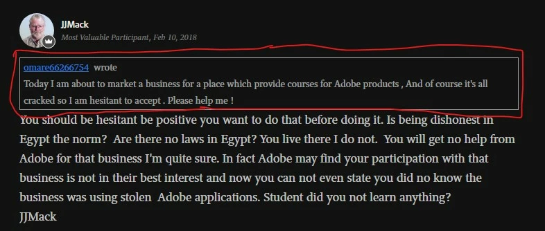 User wrote