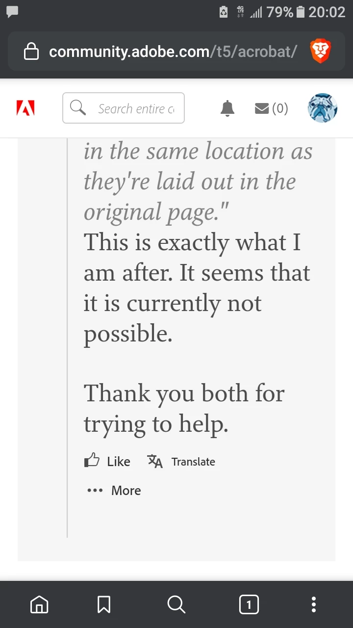 I post a question. That question received a reply. I want to reply to the reply. I click the word Reply. That word reply turns gray. I type and nothing happens. I move the cursor all over the screen searching for seomthing to click on to allow typed letters to appear. Nothing happens. What is the trick to reply to a reply on adobe community page?