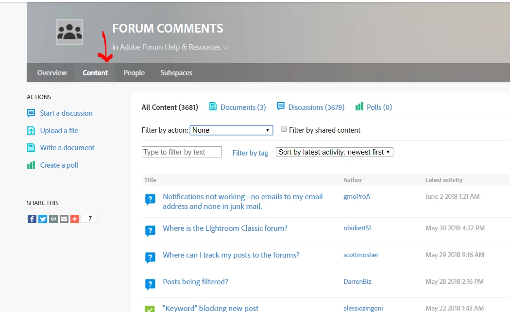 How does one use the Adobe forums to list all posts in chronological order? In the After Effects forum, I seem to be limited to the most recent six posts. Clicking the 'MORE' button only displays another 6 posts for a total of 12. I can see a few more threads initially in different forums (such as this one and the Photoshop forum) but in no instance can I get a list of more than one page.
