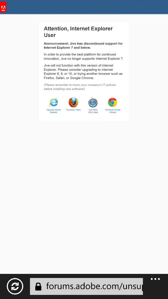 http://forums.adobe.com/ suddenly stopped working on Windows Phone 8