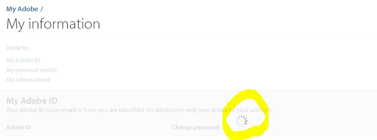 When i sign in and try to modify my account information, the progess circle (which appears when loading 'My Information' page, see attached image) does not disappear.