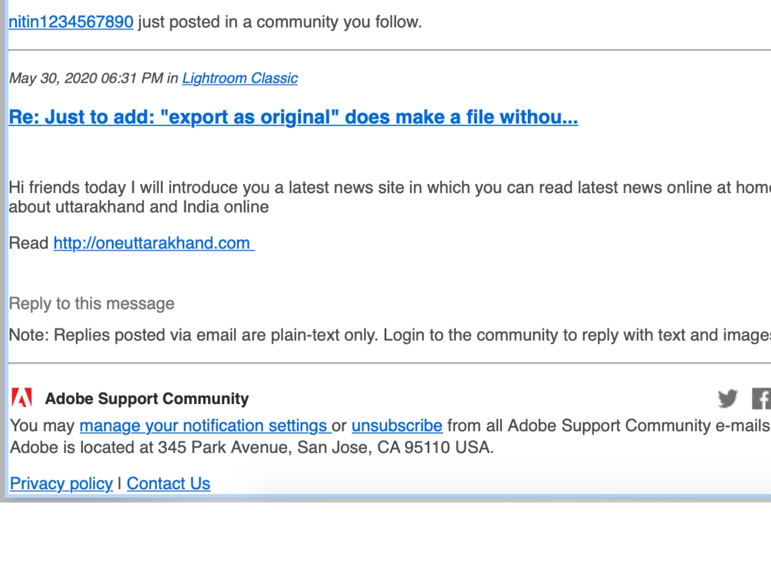 so i got this email notification and when i went to go and flag it in the thread, i didnt see it? Has my email been hacked or adobe? Or was it deleted b4 i got to send a phishing report???
