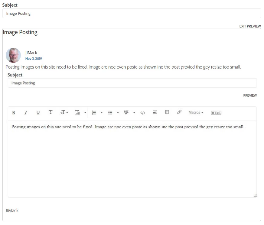 Posting images on this site need to be fixed. Image are noe even poste as shown ine the post previed the gey resize too small.