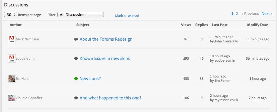 It seems to me like there's a huge amount of vertical space for each thread. About 3x as much as is necessary, which means the whole forum page is substantially longer, and far fewer threads fit on the screen.