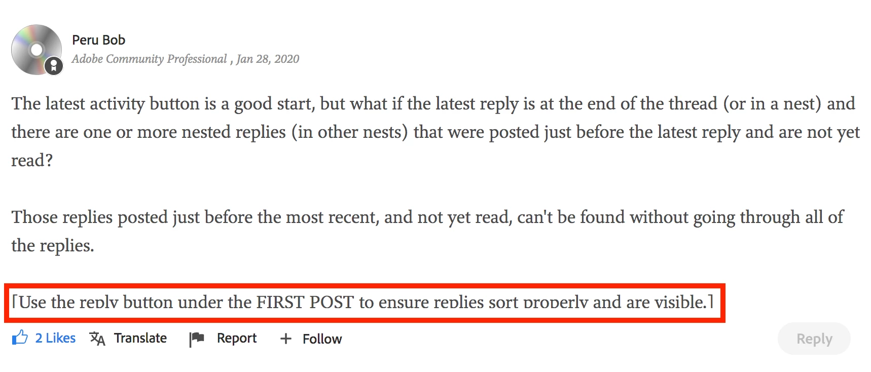 Thanks for your patience in waiting for this update - our team spent the month of December and a little bit of early January refactoring much of the Adobe Support Community. While refactoring won't show up too much in tangible features and bug fixes, we needed to spend time making sure the foundation of the Community was more solid than it was. We hear you and recognize we've got much more work to do this year.