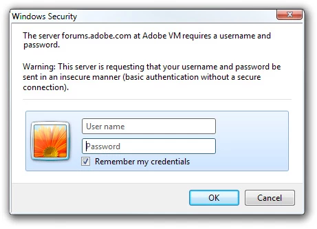 Despite my being signed in. After a I made a Reply in one forum topics and dismissed the window (I go to topics from the e-mail Notifications so I can read and just comment on what I want to), I received this strange Pop up Box requesting Username and Password and mentions something about Jive software.