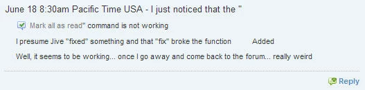 June 18 8:30am Pacific Time USA - I just noticed that the "Mark all as read" command is not working