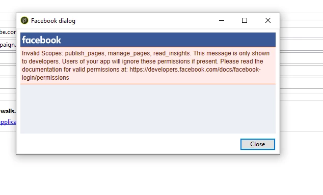 [Locked AEM] Problem Facebook Login: Invalid Scopes: manage_pages, publish_actions,read_insights