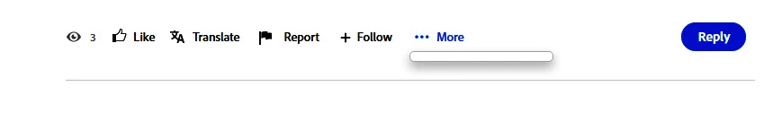 I'm active in several different Adobe products and often post questions to these forums and I've noticed lately that the "More" button doesn't seem to work. When I click it I get just a thin horizontal line. I need it because it contains the all-important Edit button so we can make corrections or clarifications to questions we posted. I get the exact same result in the latest versions of Chrome and Firefox. I'm using a desktop PC running Windows. I've attached a screenshot.