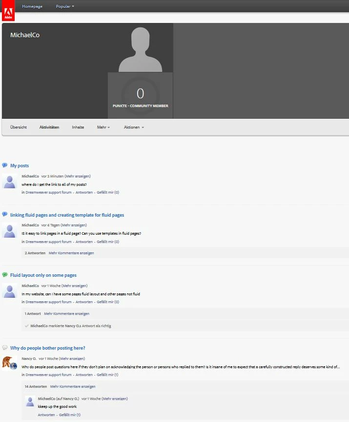 you only need to click into your name or your avatar, then use "activities" (translated from my German JIVE) and you will see your posts (see my screenshot with some of them):