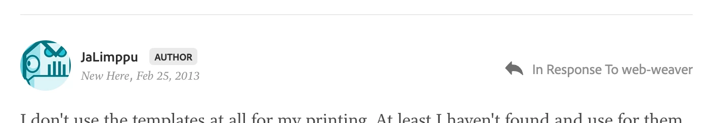 The Bugs and Ideas subforums of Lightroom Classic don't support the threading controls that Discussions allows. This is most unfortunate, since threads in these subforums can involve dozens of people and be very long with concurrent sub-threads.