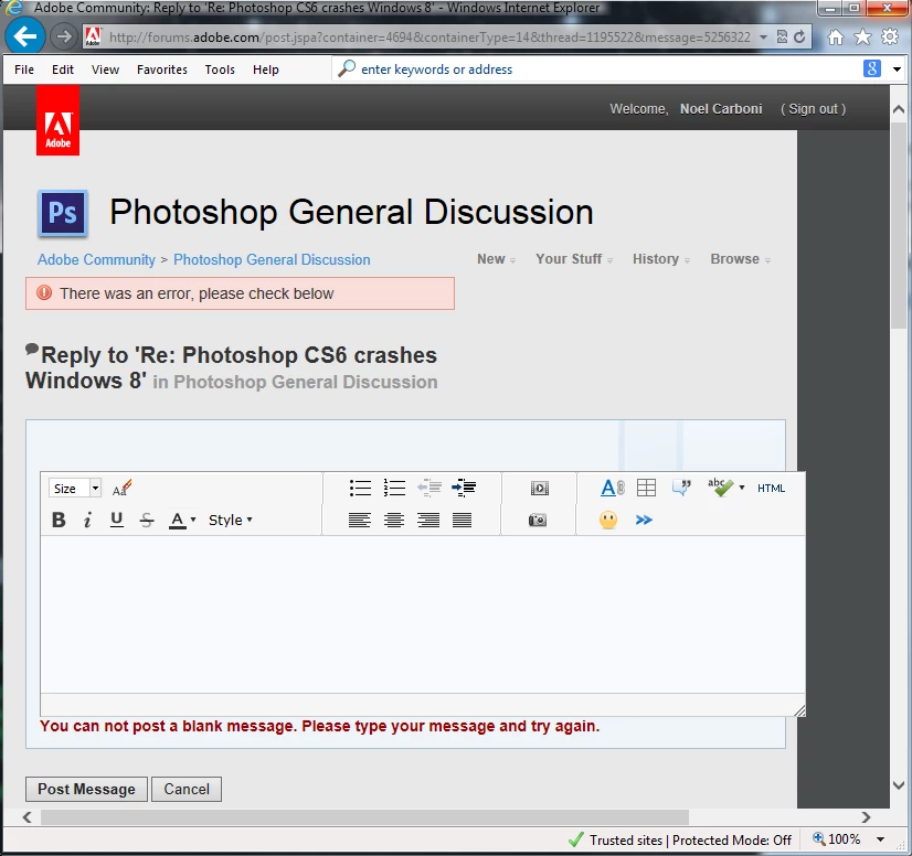 I have IE10 on Windows 7 x64, and haven't had any system changes since the last Windows Update 12 days ago. Yet now for the past day or so I am having problems replying to threads. This is new, and on top of the problems over the past several days where the Enter key simply does not work right.