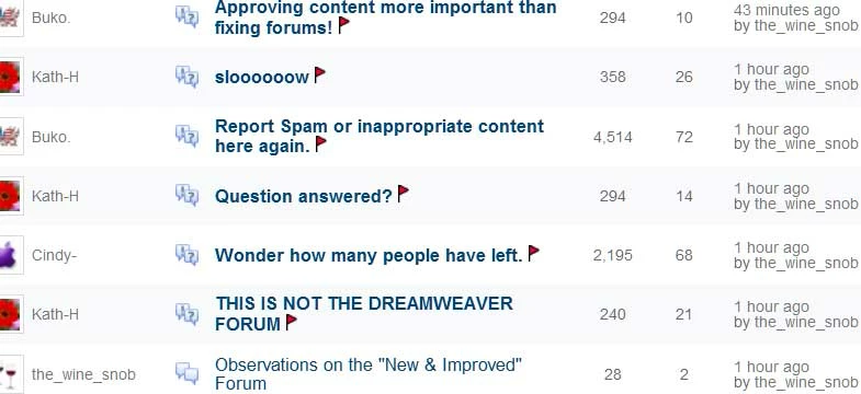 I've now lived with the new forum for a bit. I've been posting and replying to similar threads in the Adobe Premiere Video Lounge, since the changeover, but after some reflection, realize that this is a better place to, er-r-r vent. Still, there are some good points, so I'll list those first.