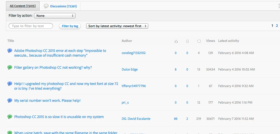 photoshop forum’s "all content" does not update