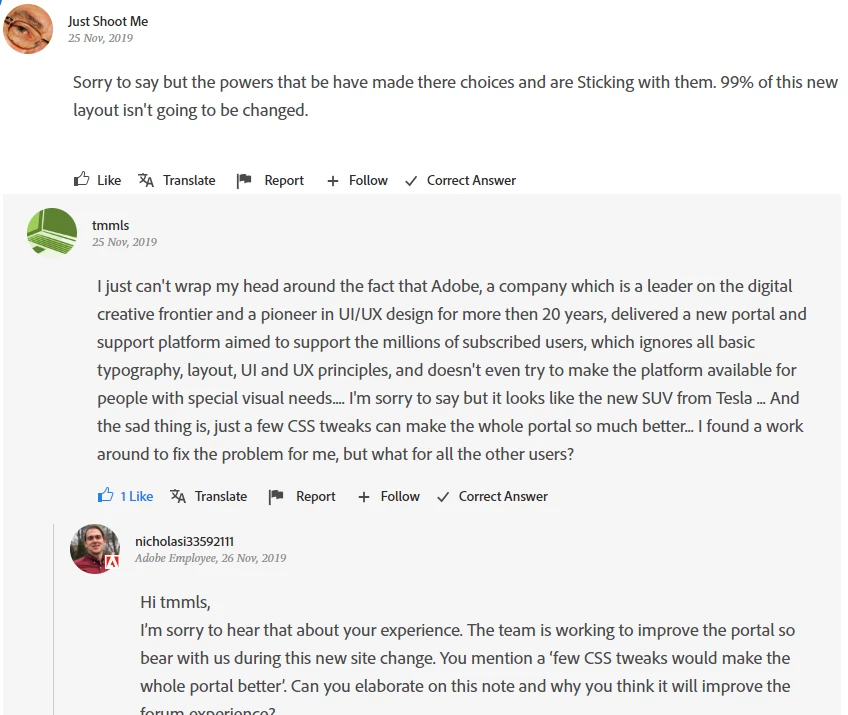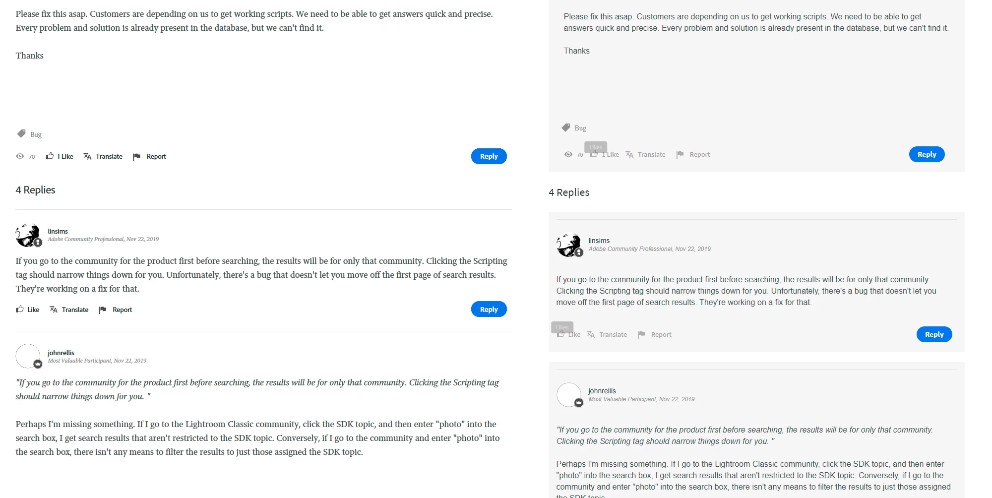 Could you please consider tweaking the layout of the post page? Because the entire page has a white background, including all posts and almost all replies, it becomes very difficult the distinguish different posts. Also the serif font makes it very hard to read the content of the page.