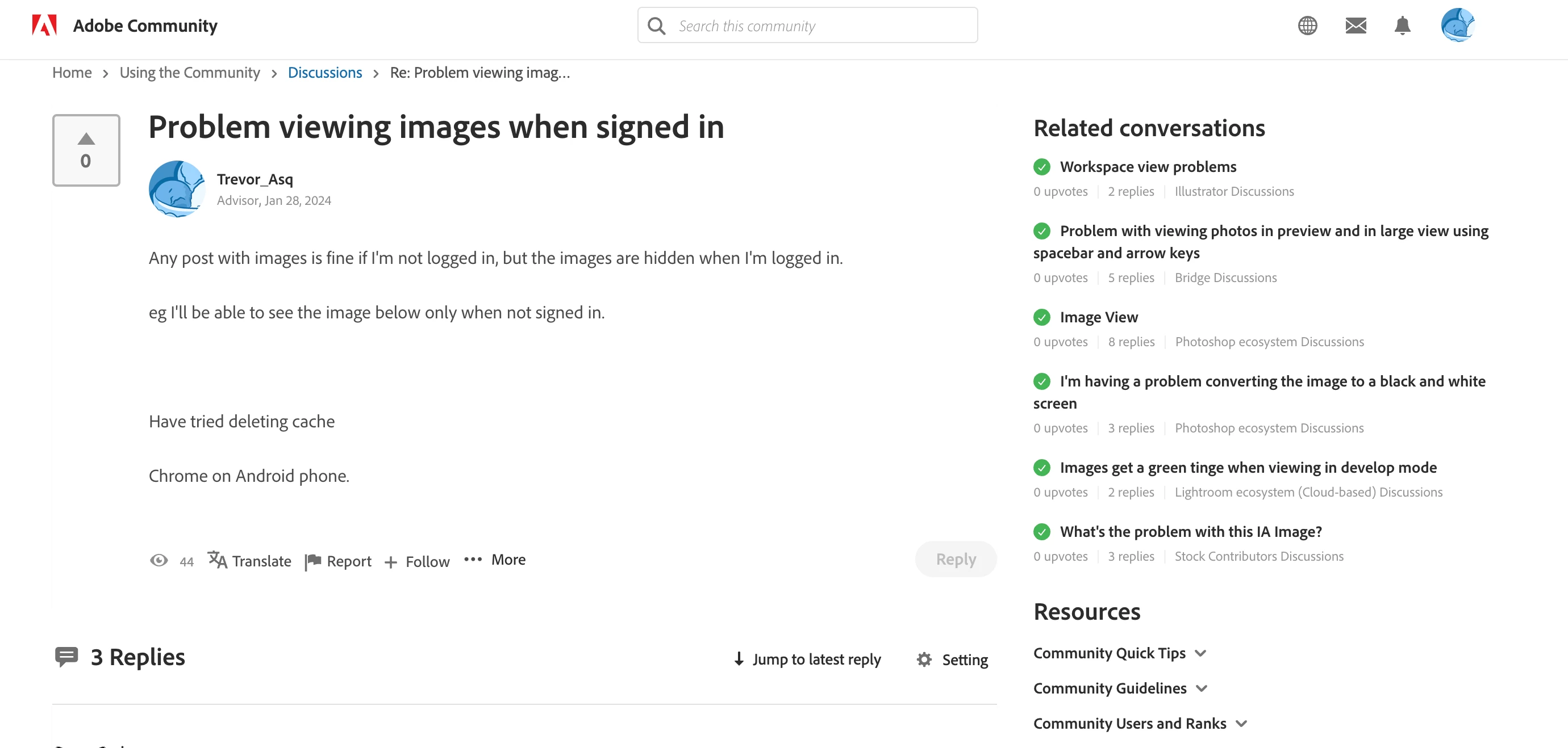 Any post with images is fine if I'm not logged in, but the images are hidden when I'm logged in.