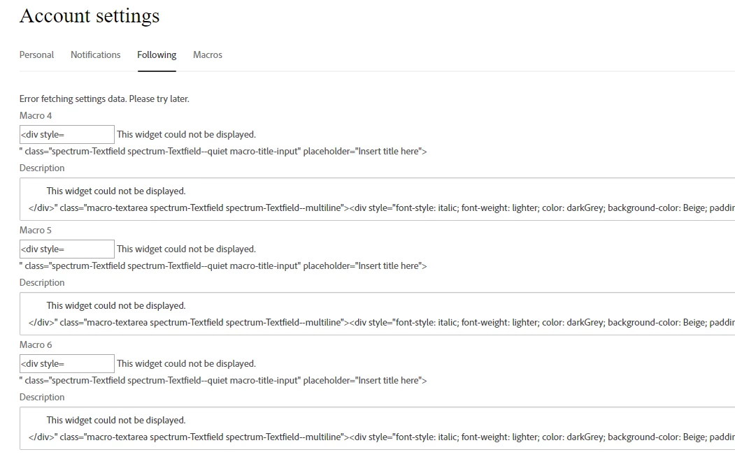 All tabs in the account settings are not displaying on either browser.